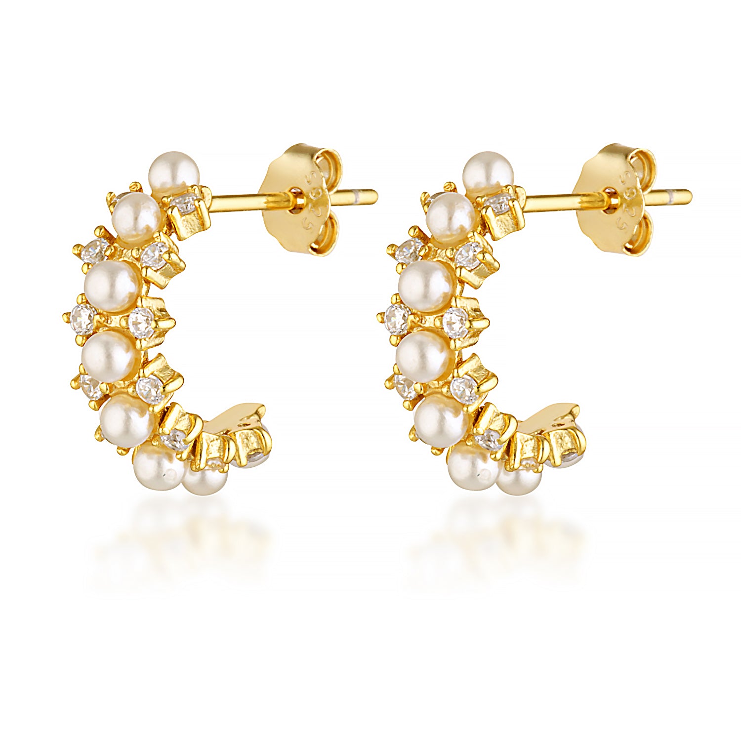A Cinderella Story Mini Hoops are Gold Plated Stud earrings adorned with freshwater pearls and zircon stones. They are long lasting, waterproof and perfect for any occasion.