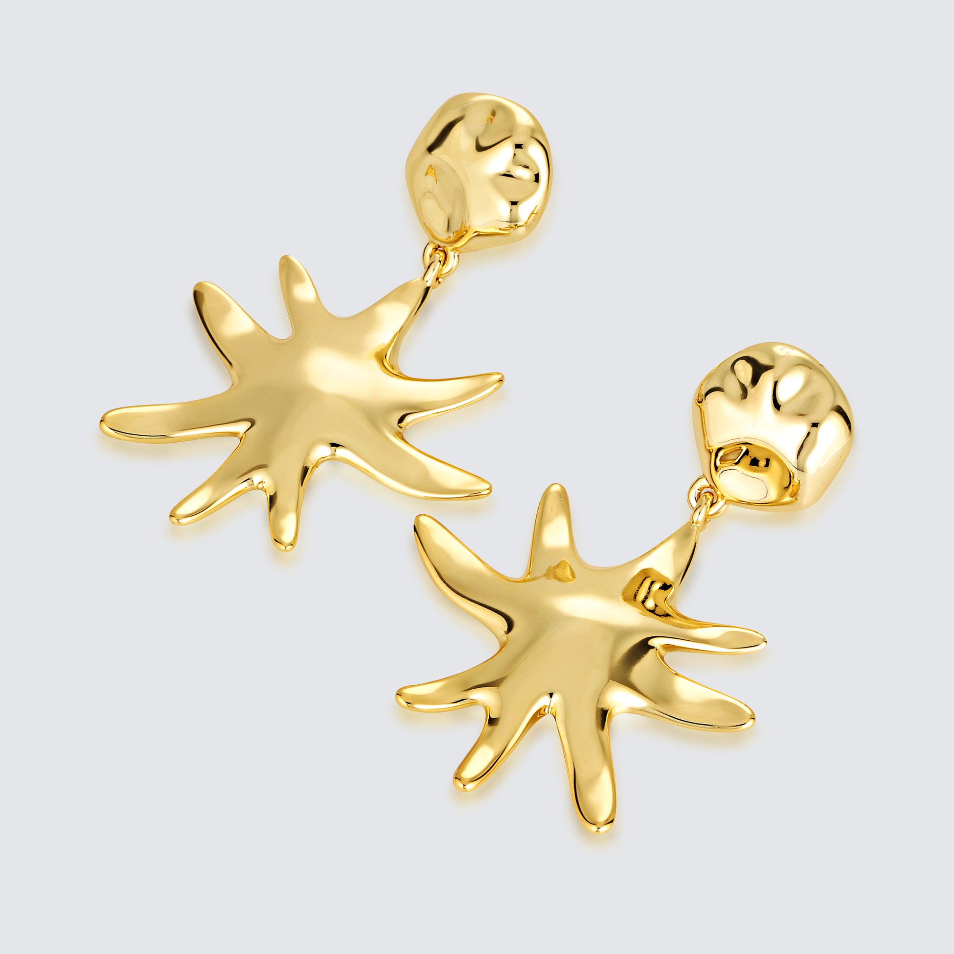 In Like Finn Into The Night Earrings are 18K Gold Plated Studs that feature an asymmetrical star shape. Designed for those wanting to make a statement, they are long lasting, water resistant and perfect for everyday wear.